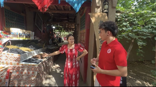 浸潤民俗文化:感受傳承力量與青春擔當除產(chǎn)業(yè)調(diào)研外,學(xué)習(xí)維吾爾族傳統(tǒng)葡萄文化民俗知識是實踐團的另一重要任務(wù)。在景區(qū)民俗區(qū)域,成員們通過走進王洛賓音樂藝術(shù)館,聆聽《在那遙遠的地方》等經(jīng)典民歌,感受音樂與葡萄文化的交融;走訪達瓦孜民俗風(fēng)情園,體驗高空走繩等傳統(tǒng)技藝表演;探訪青蛙巷特色街區(qū),深入了解維吾爾族與葡萄相關(guān)的節(jié)慶、手工藝及飲食文化。“從葡萄架下的民俗故事,到代代相傳的種植技藝,再到今日鮮活的民俗體驗,文化的生命力就藏在這些細節(jié)里。”實踐團成員烏力凡感慨道。此次實踐讓團隊深刻認識到,文化傳承不僅是技藝的延續(xù),更是民族精神的紐帶。