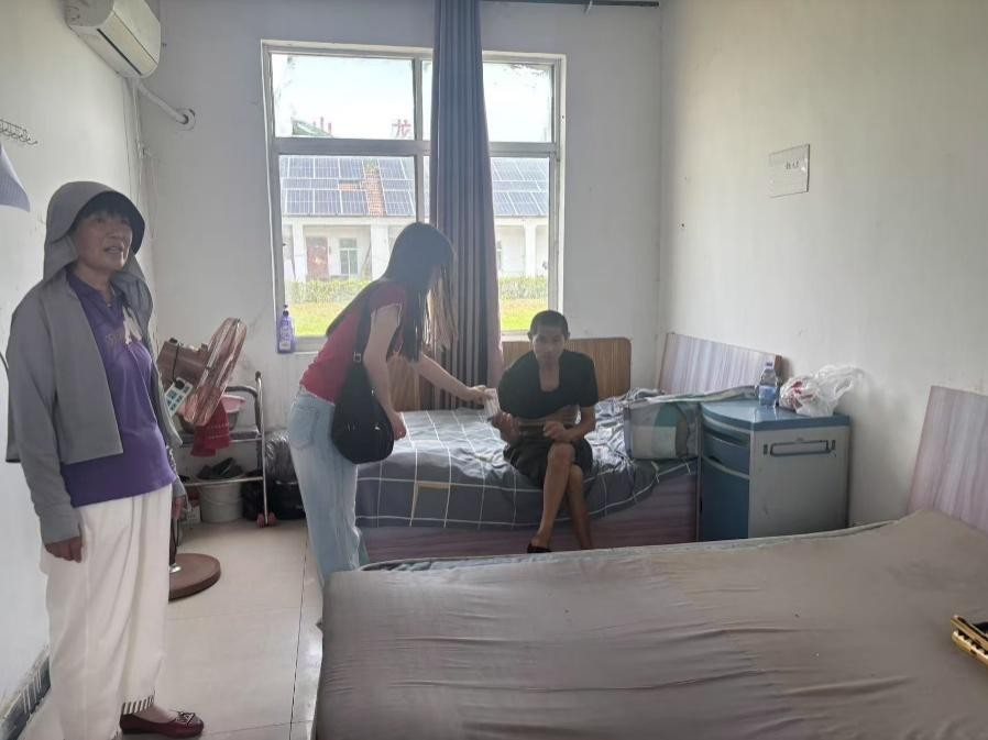 圖為志愿者服務(wù)團(tuán)隊(duì)成員在宿舍與老人交談。攝影:高潔;
