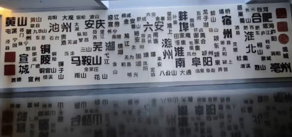 “安徽文房四寶”“江淮擷珍”等展廳,展現(xiàn)了安徽深厚的文化底蘊。文房四寶曾見證了無數(shù)革命志士寫下激昂的戰(zhàn)斗檄文,江淮大地的珍寶則承載著人民對美好生活的向往,這與紅色革命追求民族獨立、人民幸福的目標高度契合。安徽地名墻更是串聯(lián)起一個個紅色地標,從大別山到皖西革命根據(jù)地,每一個地名都鐫刻著紅色記憶,訴說著安徽人民在革命年代的英勇壯舉。