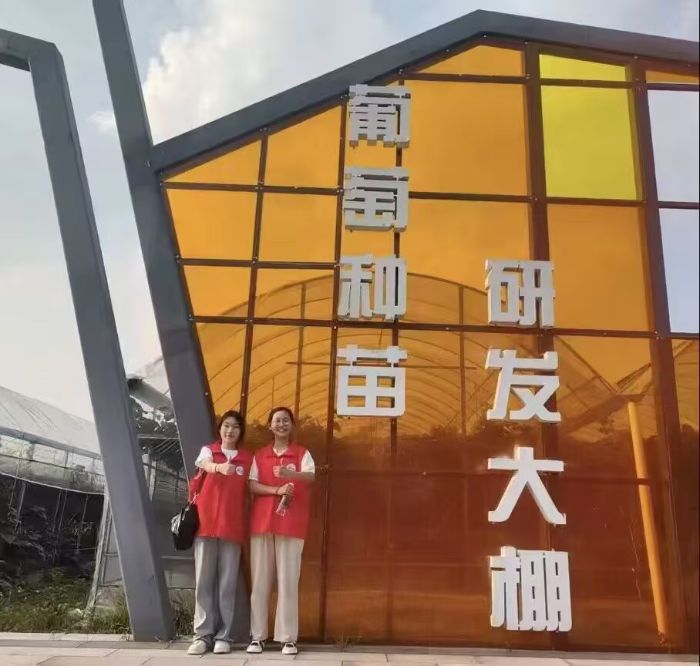 (志愿者們參觀葡萄種苗大棚 祁議瑤攝)