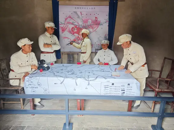 走進(jìn)舊址的核心區(qū)域——楊家臺(tái)子,這里完整保留了當(dāng)年總前委會(huì)議的場(chǎng)景。屋內(nèi),簡(jiǎn)陋的桌椅、陳舊的馬燈、布滿標(biāo)記的作戰(zhàn)地圖,一切都維持著當(dāng)年的模樣,瞬間將人們的思緒拉回到了1948年12月17日那個(gè)決定戰(zhàn)局走向的夜晚。就在這里,總前委成員們徹夜商討,研究部署圍殲杜聿明集團(tuán)的作戰(zhàn)計(jì)劃,為淮海戰(zhàn)役的全面勝利奠定了堅(jiān)實(shí)基礎(chǔ)。