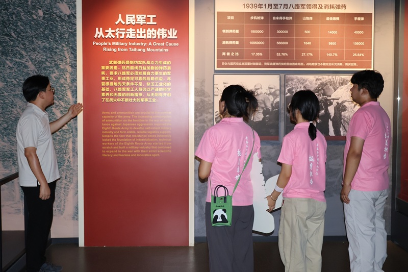 踏入莊嚴(yán)肅穆的八路軍總部紀(jì)念館,珍貴文物與詳實(shí)史料串聯(lián)起八路軍在華北抗戰(zhàn)的壯闊歷史。實(shí)踐團(tuán)沿著歷史脈絡(luò),從八路軍總部成立的艱辛歷程,到平型關(guān)大捷、百團(tuán)大戰(zhàn)的戰(zhàn)略輝煌,再到太行軍民自力更生發(fā)展軍工的奮斗篇章,每一段歷史都深深叩擊心靈。在《論持久戰(zhàn)》的文字前,大家沉思抗戰(zhàn)方略的深邃智慧;于 “太行山就是我們的根據(jù)地” 的誓言中,感受革命先輩的堅(jiān)定信念,體悟全民抗戰(zhàn)的磅礴力量。