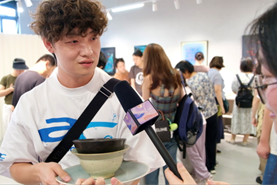 下午3時(shí),實(shí)踐團(tuán)隊(duì)在博物館周邊的文化廣場(chǎng)開展紫砂文化互動(dòng)宣傳活動(dòng)。廣場(chǎng)上,團(tuán)隊(duì)派出代表擔(dān)任主持人,隨機(jī)邀請(qǐng)路過的游客參與到我們的互動(dòng)中來,“對(duì)紫砂壺的了解程度有多少?”“是什么原因促使你來到這里?”“對(duì)于紫砂文化的傳承你有何看法?”等問題引發(fā)不少游客的關(guān)注,興趣高漲,與此同時(shí)對(duì)于積極參與問答的游客,團(tuán)隊(duì)送出自己精心制作的紫砂壺Q版人物吧唧等文創(chuàng)周邊,也供游客免費(fèi)領(lǐng)取或低價(jià)購買,起到很好的宣發(fā)作用。