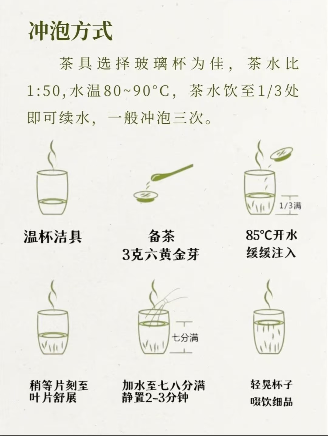 一杯地道的廣德黃金芽,講究的是“色、香、味、形”四絕兼?zhèn)?。金黃的茶芽在杯中舒展,湯色明亮如琥珀,散發(fā)著淡淡的蘭花香。輕啜一口,鮮爽的茶湯滑過舌尖,甘甜在喉間縈繞,令人心曠神怡。細觀葉底,嫩芽勻整鮮活,盡顯高山茶的靈氣。