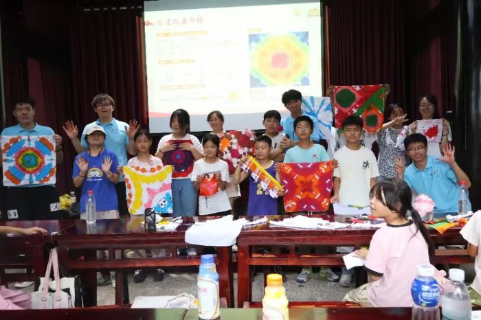 邂逅“古今中外”,點(diǎn)亮知識(shí)火花為了讓孩子們擁有一個(gè)豐富多彩的暑假,支教團(tuán)的成員們精心設(shè)計(jì)的各式各樣的課程,“古今中外”樣樣齊全,既有語文、英語、地理、歷史和體育等趣味學(xué)科課程,也有剪紙、扎染、書法和圍棋等傳統(tǒng)文化和非遺手工體驗(yàn)課程,音樂、繪畫、詩歌等課程則為孩子們提供了發(fā)揮想象和創(chuàng)意的平臺(tái)。此外,科學(xué)實(shí)驗(yàn)和AI通識(shí)課與環(huán)保巧妙結(jié)合,更是在孩子們的心中種下了科技和環(huán)保的種子。陶如霜小朋友說道:“我最喜歡阿佳老師的繪畫課,她教會(huì)我如何觀察生活。”張正文小朋友則對(duì)文卓老師開設(shè)的趣味英語課情有獨(dú)鐘,他認(rèn)為文卓老師授課幽默風(fēng)趣,讓他對(duì)以往覺得無聊的英語產(chǎn)生了濃厚的興趣。
