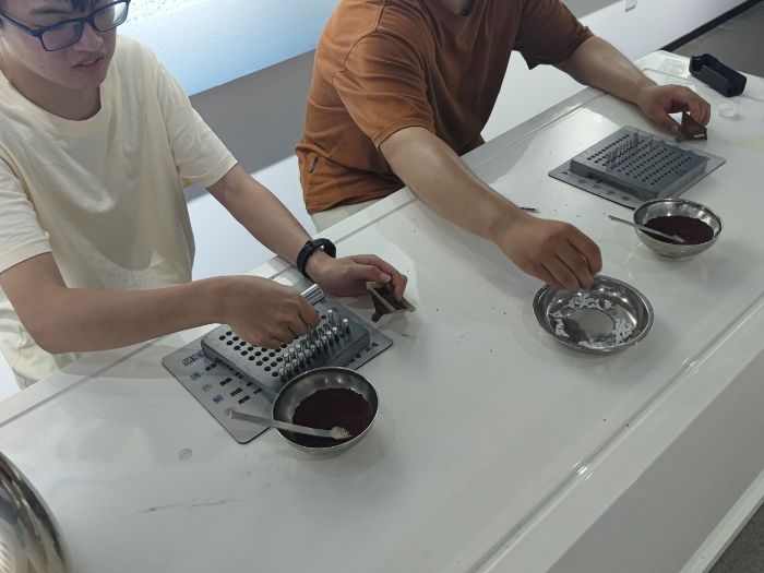 7月2日,團(tuán)隊(duì)首站走進(jìn)南通精華制藥集團(tuán),探訪國家級非遺“王氏保赤丸制作技藝”在彌漫著濃厚歷史氣息的文化館內(nèi),非遺傳承人王師傅為學(xué)子們揭開了這項(xiàng)百年技藝的神秘面紗——從牛黃、朱砂等名貴藥材的嚴(yán)苛甄選與古法炮制,到起模、蓋面、打光等21道精細(xì)入微的手工工序。當(dāng)王師傅現(xiàn)場展示手工起模絕活,并強(qiáng)調(diào)“一粒合格藥丸需經(jīng)300余次手工泛制,重量誤差嚴(yán)控在±3%之內(nèi)”時,實(shí)踐團(tuán)隊(duì)成員們無不屏息凝神,為這毫厘間的極致匠心所震撼。他們親手體驗(yàn)篩藥環(huán)節(jié),并將一粒粒凝結(jié)著古老智慧與匠人溫度的藥丸珍藏,感受技藝的溫度。
