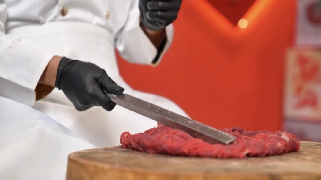 在圍廬牛肉火鍋店的明檔廚房,非遺技藝鮮活上演:每日凌晨直采的黃牛經(jīng)36道工序分割,游客可親手體驗捶打牛肉丸的匠心時刻。透過玻璃長廊,生產(chǎn)線化為了流動的潮味博物館。在機械臂與木縋共舞的韻律中,陳師傅看向桌前的游客們,笑言:“他們帶走的不僅是丸子,還有木槌聲里的潮汕魂!”