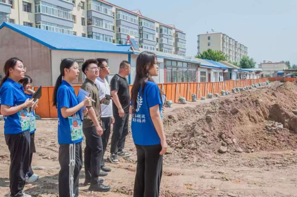 實踐團隊接著前往舊小區(qū)管道及停車場改造施工現場,深入作業(yè)核心區(qū)域考察施工全流程,施工區(qū)域呈現出有序的作業(yè)態(tài)勢。團隊成員從基礎土方開挖、管道安裝敷設,到停車場場地平整及綠化帶規(guī)劃,進行系統(tǒng)性調研。
