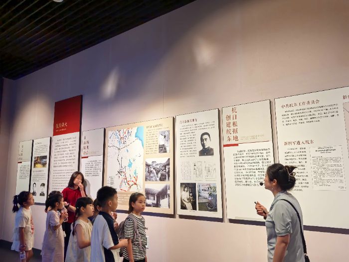 在滁州市博物館,團隊成員與當?shù)匦W30余名學生組成“紅色學習小組”,共同聆聽講解員以“皖東烽火”為主題的專題講解。展廳內(nèi),一尊尊烈士雕像、一封封泛黃家書、一件件戰(zhàn)爭遺物,將大家?guī)Щ啬嵌畏榛疬B天的歲月。講解員生動講述了皖東抗日根據(jù)地的建立過程,以及滁州兒女在渡江戰(zhàn)役中“劃著木船送大軍”的感人故事。