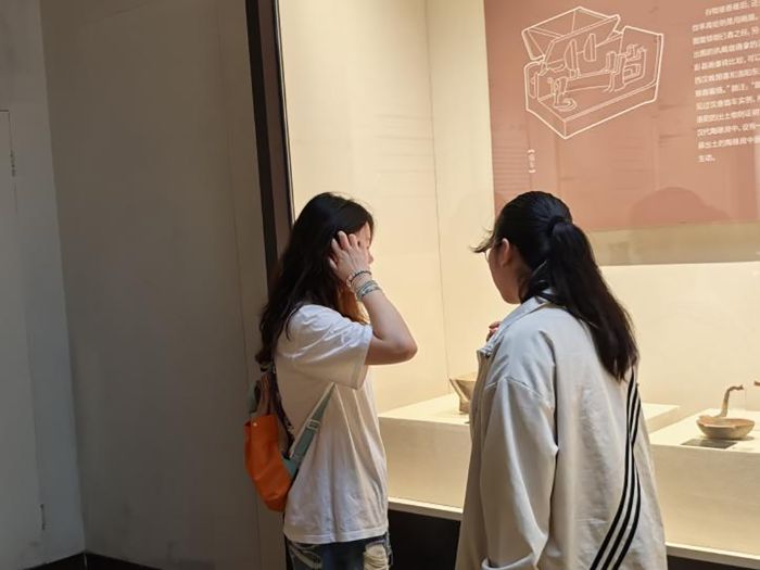 轉(zhuǎn)過(guò)展柜,漢代陶制明器展區(qū)讓人眼前一亮。陶樓的飛檐雖已褪色,卻仍能想見(jiàn)當(dāng)年的精巧;陶倉(cāng)的圓形倉(cāng)體,藏著古人對(duì)“倉(cāng)廩實(shí)”的樸素向往。“這些不是簡(jiǎn)單的模型,而是漢代人用泥土捏出的生活愿景。”一位隊(duì)員在筆記上寫下這句話時(shí),指尖似乎觸到了陶土的溫?zé)帷?br />