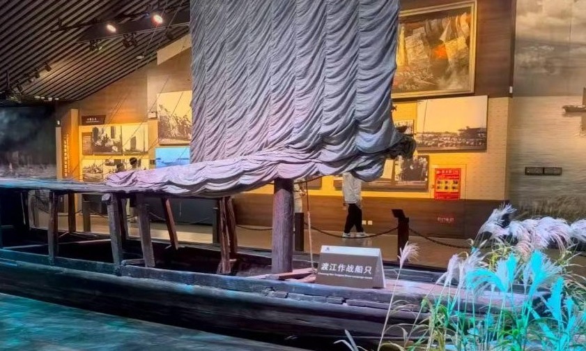 在“渡江第一船”實物展品前,隊員們駐足良久。這艘斑駁的木船曾載著12名解放軍戰(zhàn)士冒著槍林彈雨率先突破長江天險,船身上的彈孔至今清晰可見,仿佛在訴說著當年戰(zhàn)斗的慘烈與勇士們的無畏。“看到這些實物,比在書本上學習更有沖擊力,我真切感受到了革命先輩為了新中國不怕犧牲的精神。”團隊成員感慨道。