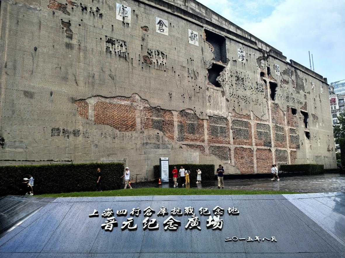 2. 上海市四行倉(cāng)庫(kù)抗戰(zhàn)紀(jì)念地:彈孔里留存的歌聲當(dāng)日下午,實(shí)踐團(tuán)走進(jìn)四行倉(cāng)庫(kù)抗戰(zhàn)紀(jì)念地。布滿(mǎn)彈孔的高墻肅立眼前,如同一道巨大的傷疤、一部沉重的史書(shū),無(wú)聲卻震耳欲聾地訴說(shuō)著當(dāng)年激戰(zhàn)的慘烈與不屈。陳列館內(nèi),講解員的聲音在展品間輕繞。生銹的槍械、斑駁的軍服,默默承載著歲月的硝煙。立于犧牲將士名單墻前,密密匝匝的名字令人心頭沉重,悲愴之情如潮涌來(lái)。