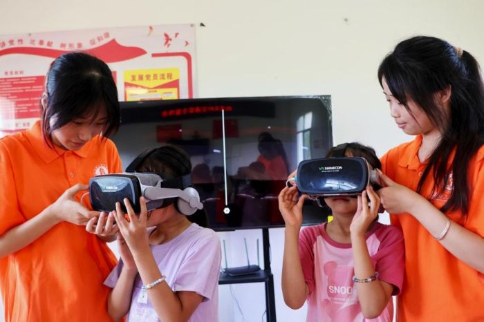 服務(wù)隊深挖白溪關(guān)村周邊革命史料,將戰(zhàn)火中的通信兵、哨兵等故事改編成情景劇。青少年手持簡易道具演繹,稚嫩的動作里滿是對英雄的崇敬。VR技術(shù)更讓歷史場景“活”了起來——戴上設(shè)備,炮火聲與沖鋒身影交織,讓青少年仿佛置身當(dāng)年的山嶺戰(zhàn)場,“原來紅軍真的在我們山上戰(zhàn)斗過”的感慨道出了紅色記憶的覺醒。