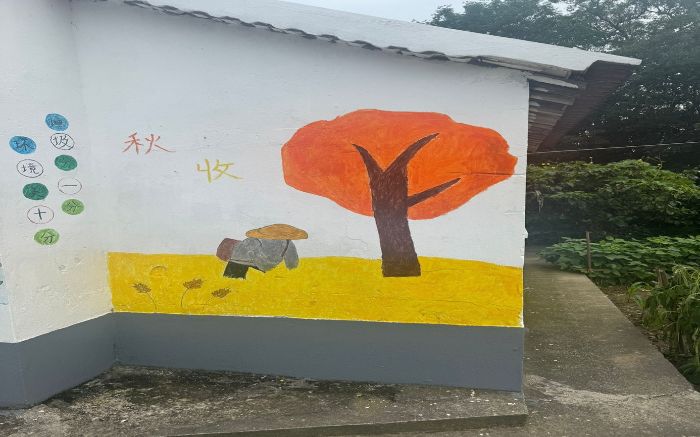 圖為志愿者與孩子們共同繪制的“秋收”主題墻繪。沈晨供圖
