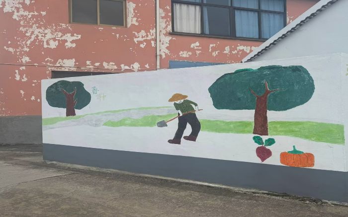 實(shí)踐團(tuán)抵達(dá)鄉(xiāng)村后,迅速與村里孩童打成一片。大家手持顏料畫筆,圍繞“春種”“秋收”主題,在鄉(xiāng)村閑置墻面上開啟創(chuàng)作。繪制“春種”畫面時(shí),孩子們仔細(xì)描摹農(nóng)夫耕地的姿態(tài),志愿者在旁啟發(fā):“就像播下種子要精心照料,垃圾分類投放,也是給環(huán)境‘耕地施肥’。”畫“秋收”場(chǎng)景,金黃麥浪、飽滿作物躍然墻上,志愿者順勢(shì)引導(dǎo):“收獲的不僅是糧食,做好分類,鄉(xiāng)村收獲的是整潔與美好。”一筆一畫間,環(huán)保與農(nóng)作的聯(lián)結(jié),悄然在孩子心中扎根。