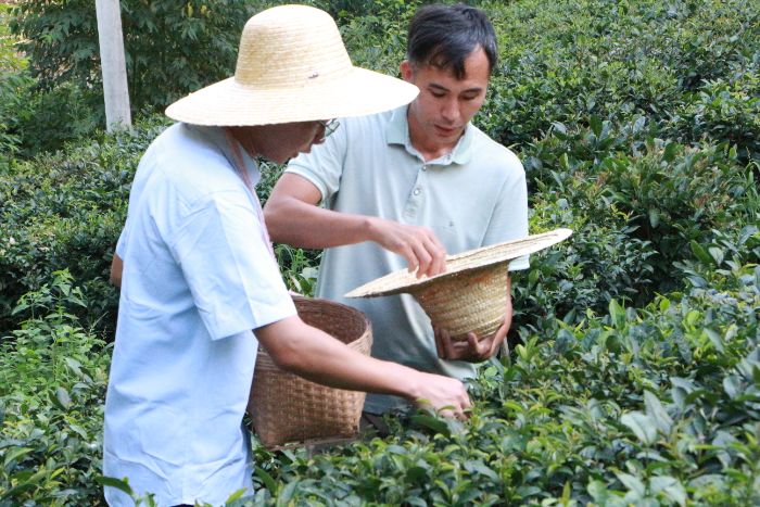 古善全在指導(dǎo)隊(duì)員采茶 段秀錦 劉佳鳳 唐煒琪攝