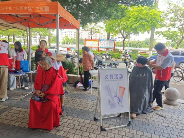 義剪攤位前,專業(yè)的理發(fā)師志愿者們耐心地為每一位居民修剪頭發(fā)。從老人到孩子,大家有序排隊,等待著自己的“新造型”。志愿者們精湛的手藝和熱情的服務(wù),得到了居民們的一致好評,不少居民剪完頭發(fā)后,對著鏡子露出滿意的笑容。