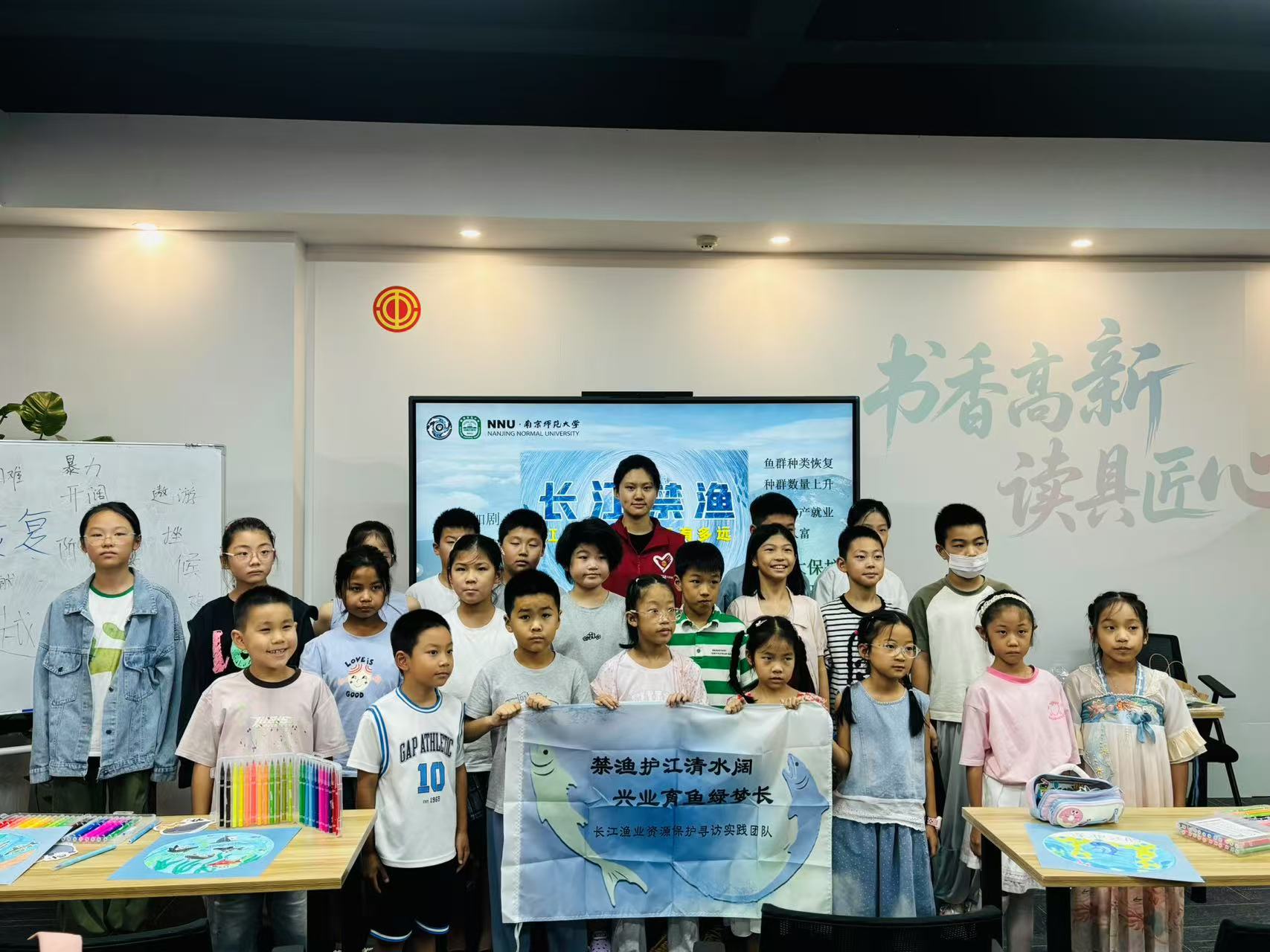 在理論講解的尾聲,團隊成員帶領(lǐng)孩子們齊聲朗讀關(guān)于長江禁漁的重要內(nèi)容。稚嫩而堅定的聲音在教室里回蕩,仿佛為滾滾大江注入了新的守護力量,讓禁漁的理念在每一顆年輕的心田生根發(fā)芽。