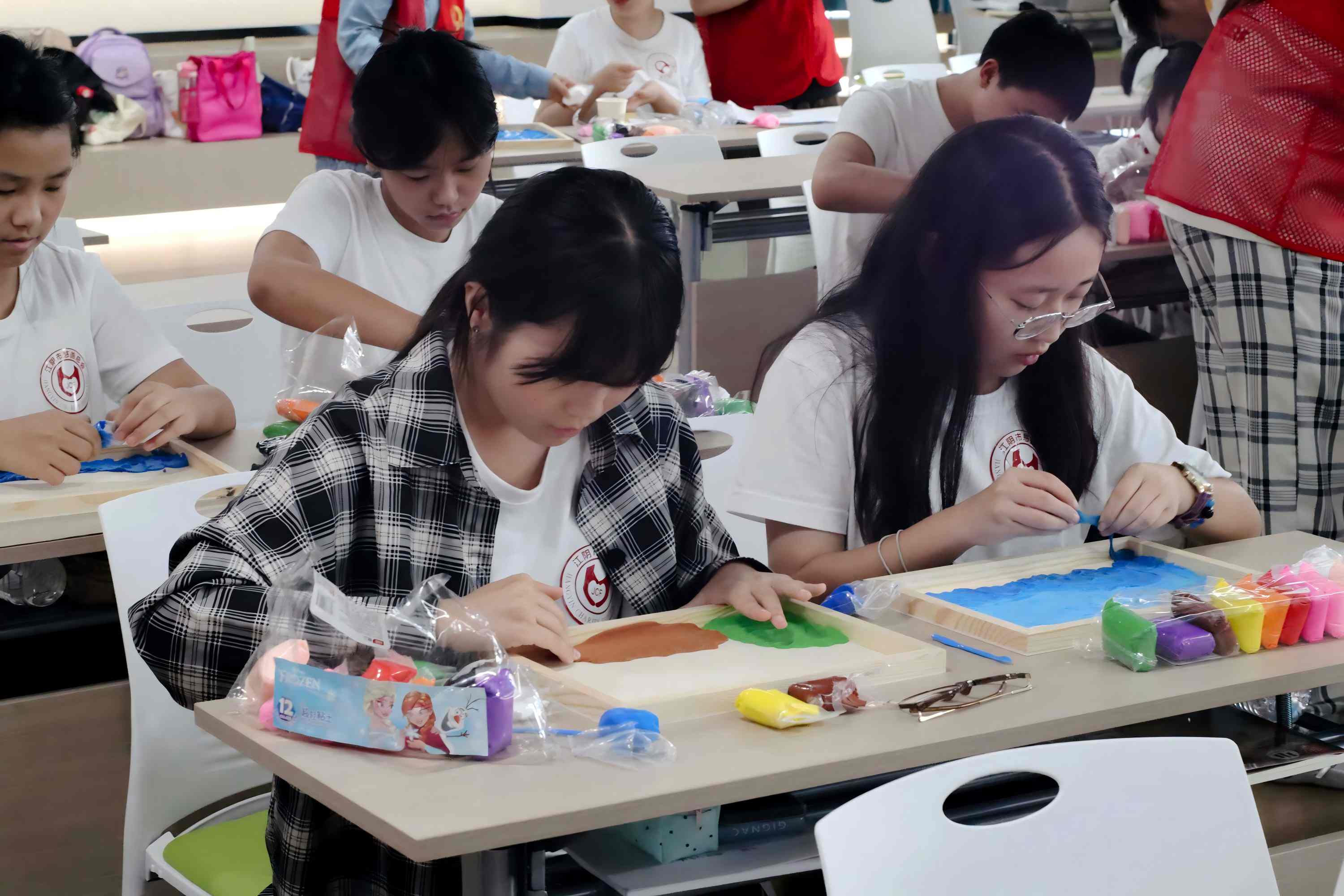 圖為江陰市澄江便民服務(wù)中心黏土畫活動現(xiàn)場,孩子們創(chuàng)作自己的專屬作品。陸佳怡 供圖