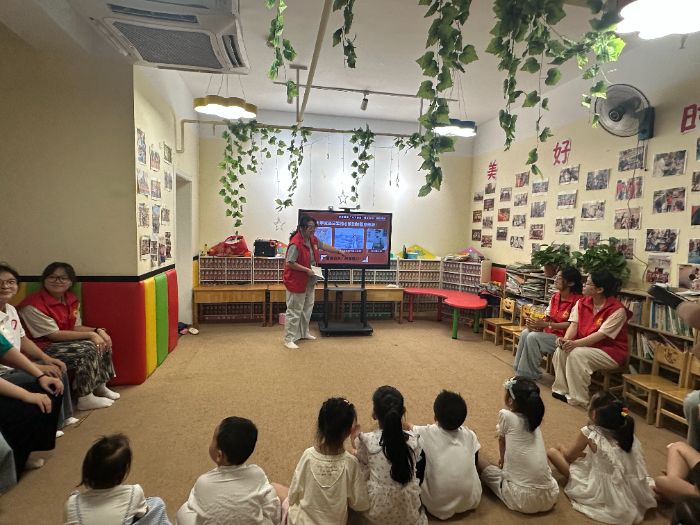 健康知識宣講環(huán)節(jié)同樣精彩紛呈。實踐團(tuán)成員們巧妙運用生動有趣的動畫演示,將抽象的健康知識變得具象易懂。在講解七步洗手法時,動畫里的卡通人物一步步演示七步洗手法的規(guī)范動作,孩子們跟著畫面里的節(jié)奏認(rèn)真模仿,很快就記住了正確步驟。而介紹海姆立克急救法時,動畫通過情景模擬展現(xiàn)了氣道梗阻急救的關(guān)鍵動作,成員們還結(jié)合動畫細(xì)節(jié),手把手指導(dǎo)孩子們?nèi)绾卧谟龅骄o急情況時正確施救。這種寓教于樂的方式,讓孩子們在輕松的氛圍中直觀理解并熟練掌握了這些實用技能,為他們的健康成長增添了一份保障。