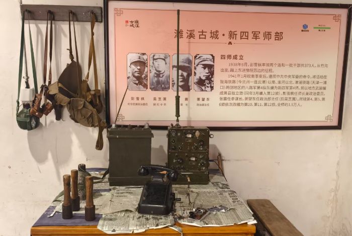 濉溪古城不僅是非遺文化的傳承地,更是有著紅色記憶、革命歷史的地方。調(diào)研團(tuán)參觀了位于古城石板街48號(hào)的新四軍師部舊址,這是全國(guó)新四軍紀(jì)念館中保存完整的革命舊址之一,承載著新四軍第四師在抗日戰(zhàn)爭(zhēng)中的光輝歷程。面對(duì)銹跡斑斑的手槍、電報(bào)機(jī)、沖鋒號(hào)等文物,隊(duì)員們仿佛被拉回到了那個(gè)戰(zhàn)火紛飛的年代,更加堅(jiān)定了銘記歷史、傳承紅色基因的信念。