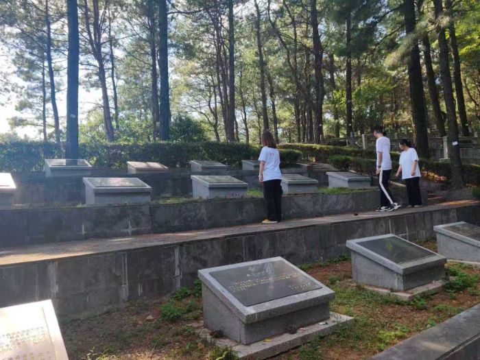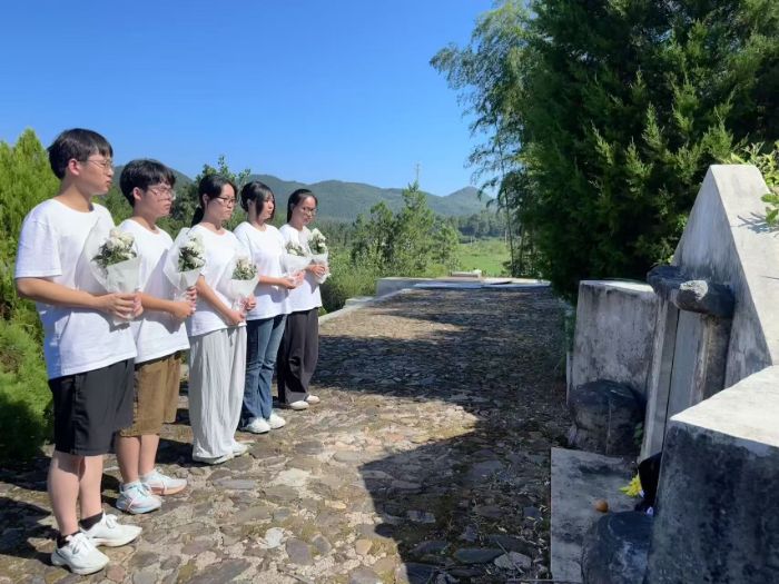 “蒼松凝翠守英烈,豐碑矗立映初心”。實(shí)踐團(tuán)專程前往黃龍崗新四軍抗日殉國(guó)烈士墓與皖南事變烈士陵園,舉行莊重的祭掃活動(dòng)。在黃龍崗烈士墓前,隊(duì)員們手捧白菊,緩步走向鐫刻著131位皖南事變犧牲指戰(zhàn)員姓名的墓碑,鞠躬致敬、靜默默哀,以鮮花寄哀思,告慰長(zhǎng)眠的革命先烈;在皖南事變烈士陵園,隊(duì)員們沿著展牌追溯歷史脈絡(luò),從“千古奇冤,江南一葉”的悲憤過往,到先烈們堅(jiān)守信仰、寧死不屈的抗?fàn)幨论E,每一段史料都讓隊(duì)員們接受深刻的精神洗禮,進(jìn)一步叩問初心、堅(jiān)定理想。