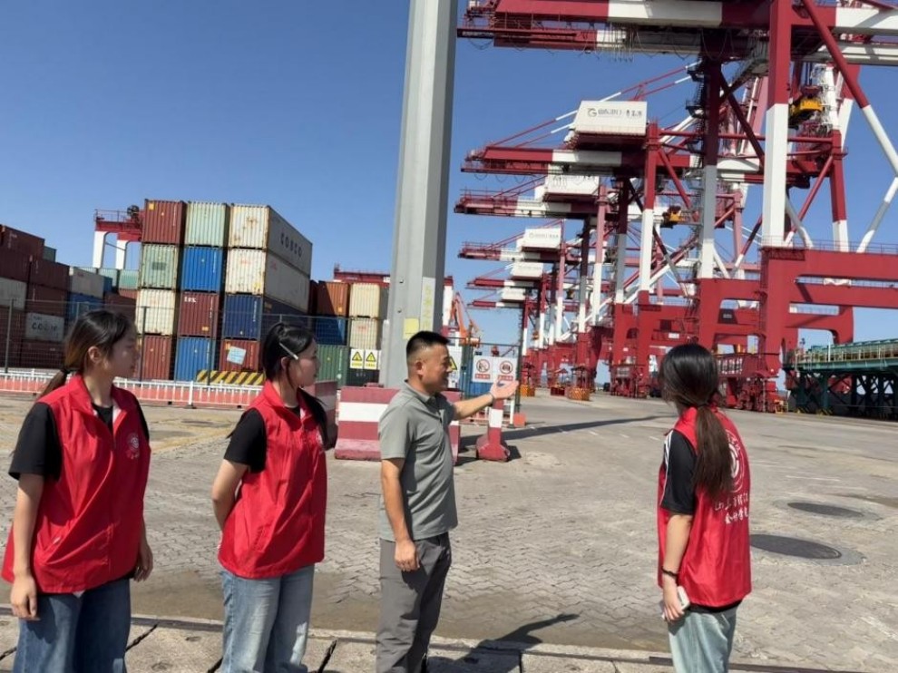 實踐團(tuán)隊在青島港碼頭進(jìn)行實踐。張明涵攝