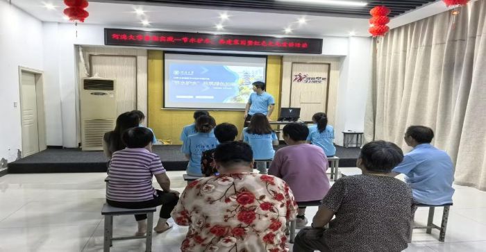 活動現(xiàn)場,老人們對節(jié)水知識滿懷好奇與關(guān)注,提前抵達(dá)等候。實(shí)踐團(tuán)成員作為演講者,借助提前準(zhǔn)備好的 PPT,以直觀清晰的圖片呈現(xiàn)我國水資源分布、短缺區(qū)域等地理概況,用詳實(shí)的數(shù)據(jù) —— 如部分地區(qū)人均水資源占有量、年缺水量等,向老人們清晰展示我國水資源短缺的嚴(yán)峻現(xiàn)狀。