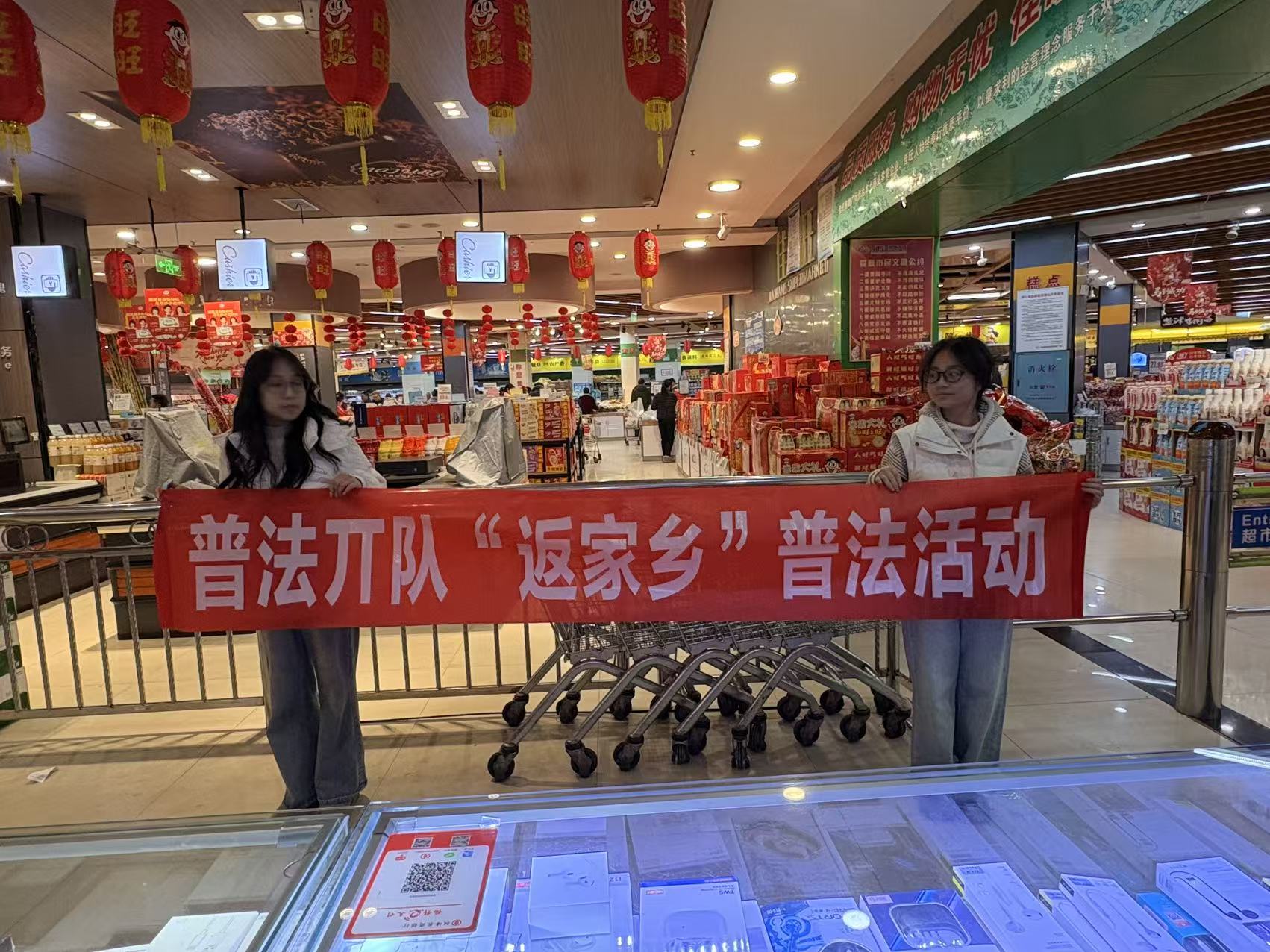 此外,隊(duì)員們還深入當(dāng)?shù)厣坛?,利用廣播宣講、現(xiàn)場(chǎng)咨詢等形式,向過(guò)往群眾普及消費(fèi)者權(quán)益保護(hù)、防范電信詐騙等法律知識(shí)。針對(duì)春節(jié)期間消費(fèi)高峰的特點(diǎn),隊(duì)員們重點(diǎn)講解了購(gòu)物維權(quán)、食品安全等相關(guān)法律要點(diǎn),提醒群眾理性消費(fèi)、依法維權(quán)。商超內(nèi)懸掛的“普法丌隊(duì)‘返家鄉(xiāng)’普法活動(dòng)”橫幅格外醒目,吸引了不少市民駐足聆聽(tīng)、咨詢。