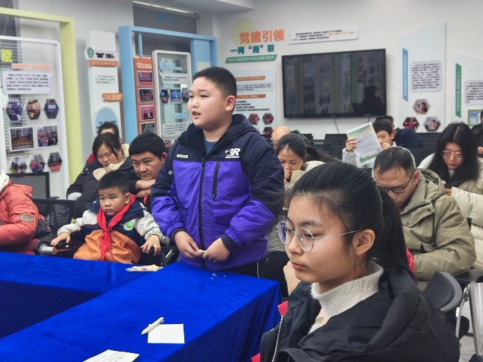 活動(dòng)伊始,大學(xué)生普法志愿者們通過(guò)精心準(zhǔn)備的圖文示范和案例解析,向在場(chǎng)的家長(zhǎng)和孩子們深入淺出地介紹了《中華人民共和國(guó)未成年人保護(hù)法》的核心要義,并有效結(jié)合當(dāng)前預(yù)防校園霸凌、網(wǎng)絡(luò)安全、節(jié)日期間的自我防護(hù)等熱點(diǎn)議題重點(diǎn)講解了對(duì)未成年人的家庭保護(hù)、學(xué)校保護(hù)、社會(huì)保護(hù)、網(wǎng)絡(luò)保護(hù)、政府保護(hù)與司法保護(hù)“六大保護(hù)”體系。在講解過(guò)程中,志愿者們強(qiáng)調(diào)《中華人民共和國(guó)未成年人保護(hù)法》不僅為未成年人提供了法律的“保護(hù)盾”,也為家長(zhǎng)履行監(jiān)護(hù)職責(zé)提供了明確指引,對(duì)于促進(jìn)未成年人健康、快樂地成長(zhǎng)具有里程碑式的意義。來(lái)自湘民社區(qū)的孩子們?cè)谝粋€(gè)個(gè)典型案例的吸引下踴躍舉手發(fā)言、分享經(jīng)歷,對(duì)“法”的感悟愈發(fā)深刻。
