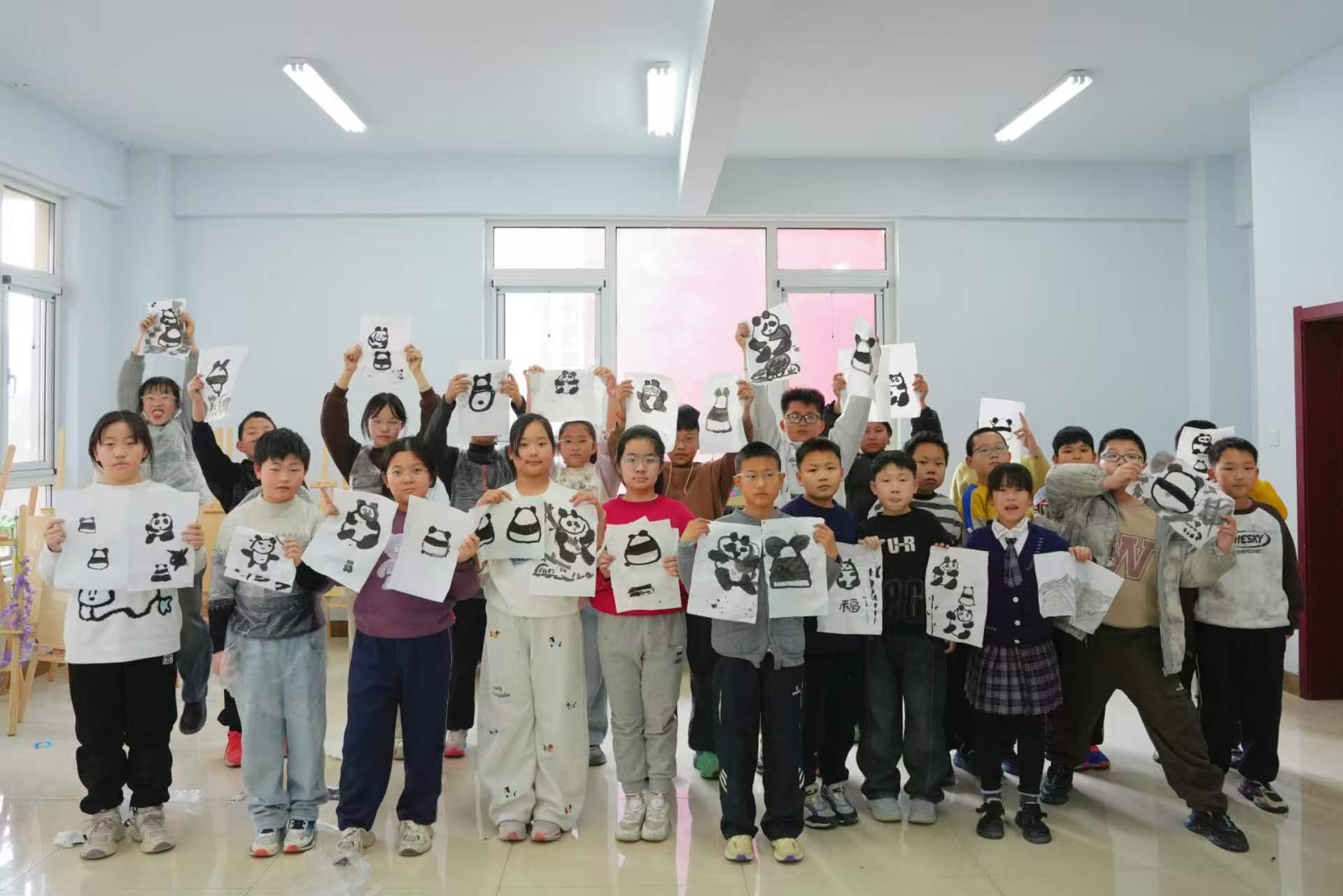 本次特色課程圍繞傳統(tǒng)文化與新春年俗設計,內(nèi)容豐富、實用性強。在水墨繪畫課上,志愿者從調(diào)墨、用筆等基礎技法入手,分步指導孩子們繪制熊貓形象,引導大家感受國畫藝術的獨特韻味。孩子們認真學習,在宣紙上完成了屬于自己的水墨作品。