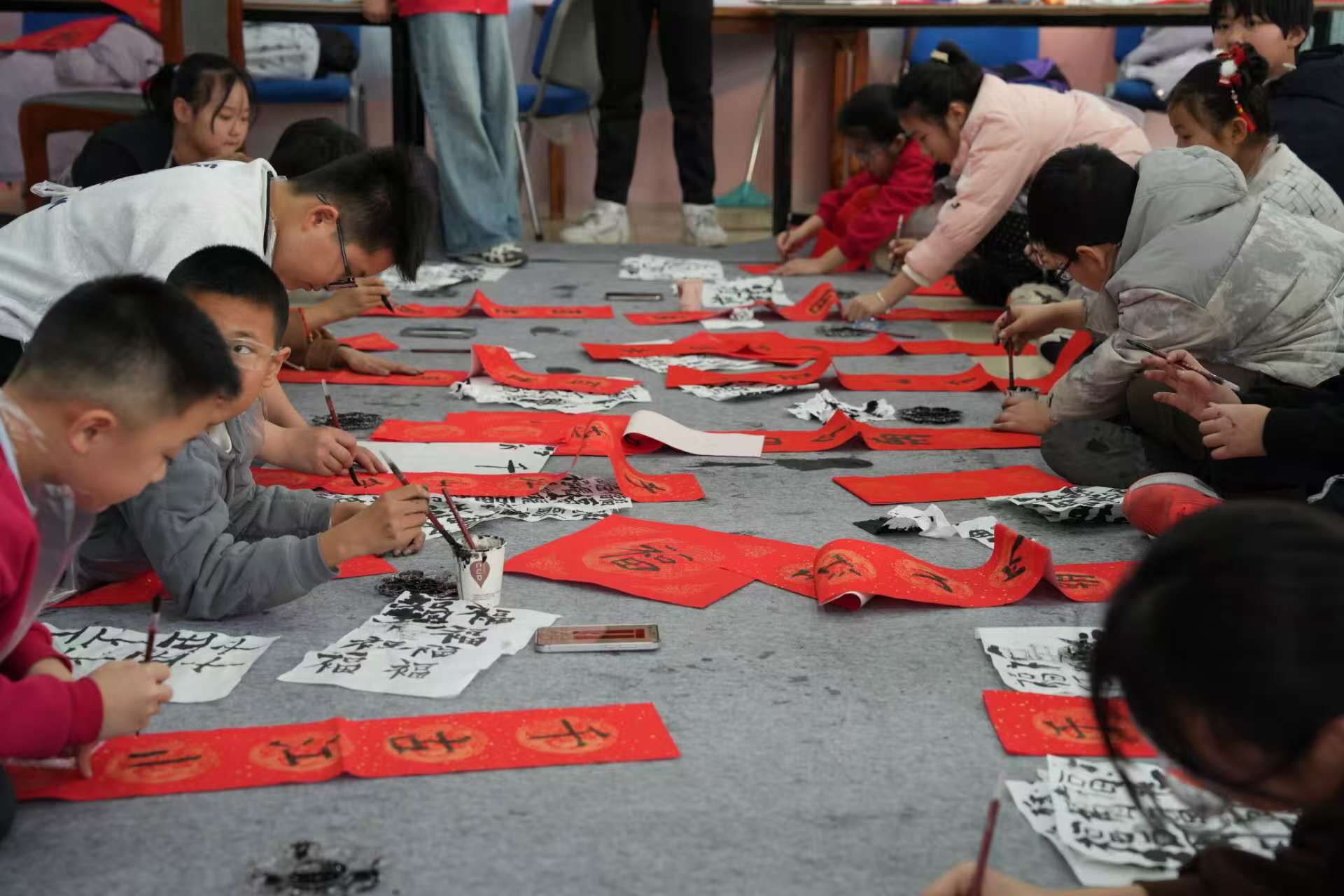 書法課程作為本次新春特色課的核心內(nèi)容,從基礎執(zhí)筆、運筆開始教學,志愿者運用通俗口訣講解筆畫要領,幫助孩子們夯實書寫基礎。結合馬年新春主題,志愿者帶領孩子們學習春聯(lián)文化、臨摹吉祥春聯(lián),并在紅紙上正式創(chuàng)作。隨后開展的寫福字活動,讓孩子們進一步了解傳統(tǒng)民俗寓意,用筆墨書寫新年期盼。一幅幅春聯(lián)、一張張福字,不僅是孩子們的學習成果,更讓新春的喜慶氛圍充盈整個課堂。