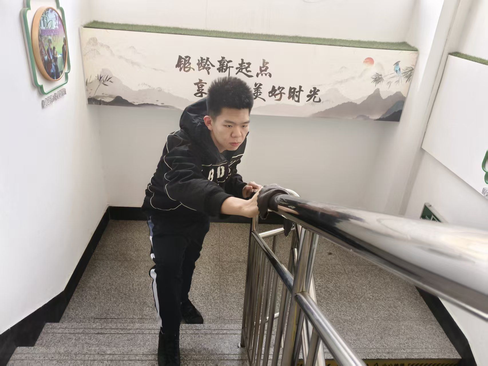 圖為實踐團(tuán)成員在打掃樓道衛(wèi)生