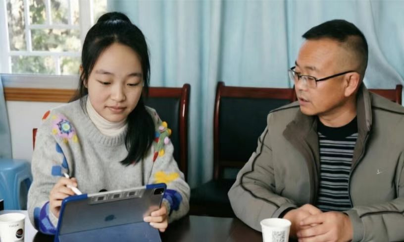 圖為團隊成員董家欣對調(diào)研地區(qū)工作人員的采訪