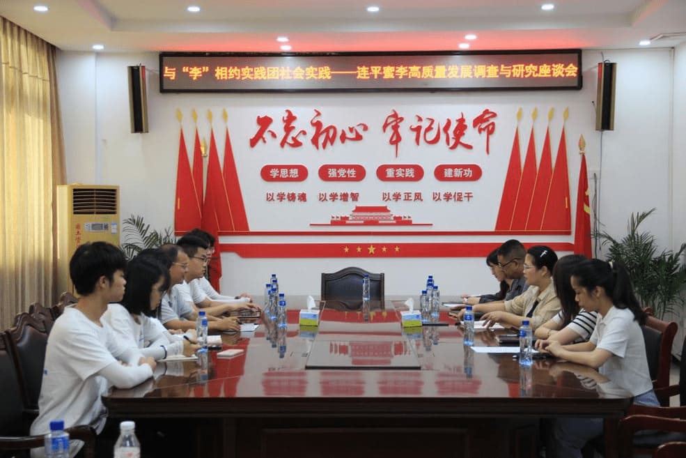 (圖為實(shí)踐團(tuán)與元善鎮(zhèn)鎮(zhèn)政府展開(kāi)連平蜜李高質(zhì)量發(fā)展與調(diào)研會(huì) 劉淇淇 攝)