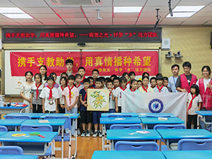 圖為教學(xué)結(jié)束之后,實(shí)踐團(tuán)隊(duì)和小朋友們拍攝大合照。