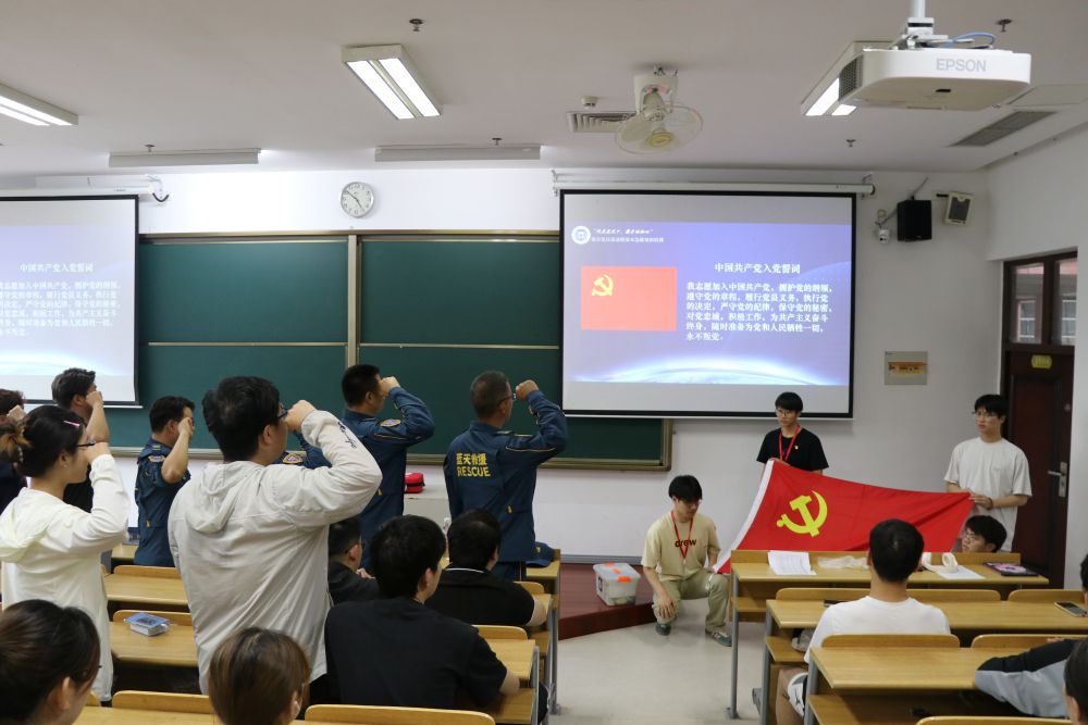 2025年5月15日,常州大學(xué)懷德學(xué)院J104教室內(nèi)黨旗飄揚,機械與材料工程系聯(lián)合靖江藍天救援隊共同舉辦"同在藍天下,攜手話初心"主題黨日活動?;顒右?quot;強化黨員責(zé)任擔當,提升師生應(yīng)急能力"為核心,通過初心講述、誓詞重溫、急救培訓(xùn)等環(huán)節(jié),展現(xiàn)新時代黨員先鋒模范作用,構(gòu)建校地黨建。