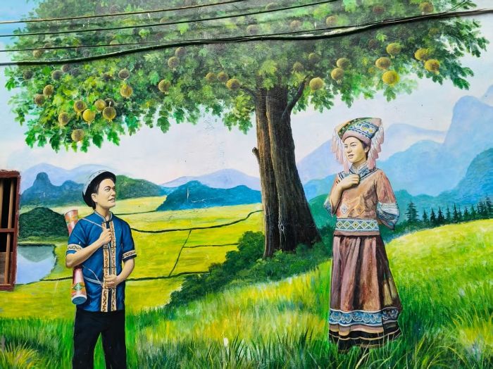 文化尋根:活化民族遺產(chǎn)賦能鄉(xiāng)村發(fā)展 古村墻面上承載著厚重歷史的壯族壁畫,成為實踐隊員解讀民族文化的"活教材"。壁畫中描繪的蘆笙演奏、農(nóng)耕互助等場景,不僅是壯族先民生活的藝術(shù)再現(xiàn),更是鑄牢中華民族共同體意識的生動見證。隊員們運用數(shù)字化手段,系統(tǒng)記錄、整理這些珍貴的文化符號,為民族文化的保護(hù)傳承與創(chuàng)新轉(zhuǎn)化積累第一手資料。