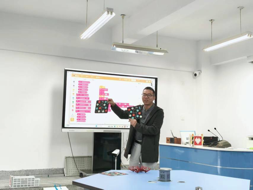 活動(dòng)伊始,支部成員在陳鳳斌老師的指導(dǎo)下學(xué)習(xí)了無(wú)人機(jī)相關(guān)知識(shí),圍繞無(wú)人機(jī)技術(shù)在教育可視化、STEM課程開(kāi)發(fā)領(lǐng)域的應(yīng)用前景展開(kāi)深入研討,進(jìn)一步認(rèn)識(shí)到無(wú)人機(jī)作為現(xiàn)代教育工具的重要價(jià)值,明確了其在激發(fā)學(xué)生科學(xué)興趣、培養(yǎng)創(chuàng)新思維方面的獨(dú)特優(yōu)勢(shì);實(shí)踐環(huán)節(jié)中,支部成員分組合作,利用可視化編程工具M(jìn)ind+編寫(xiě)代碼,控制無(wú)人機(jī)完成自定義飛行路徑、編隊(duì)表演及燈光音效聯(lián)動(dòng)等任務(wù)。從基礎(chǔ)操控到復(fù)雜指令設(shè)計(jì),支部成員們親身體驗(yàn)了“從操控到編程,從編程到創(chuàng)造”的完整過(guò)程,并在交流展示環(huán)節(jié)中分享了基于無(wú)人機(jī)設(shè)計(jì)的教學(xué)項(xiàng)目方案,方案融合了學(xué)科知識(shí)與技術(shù)應(yīng)用,充分展現(xiàn)了支部成員將專(zhuān)業(yè)所學(xué)轉(zhuǎn)化為具體教學(xué)資源的能力。