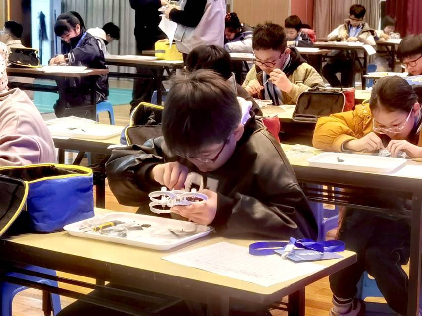 本次聯(lián)賽設置無人機拼裝賽道、第三視角賽道、無人機足球賽道三大競賽項目,是福州市推動科技體育融合、培育青少年創(chuàng)新精神與實踐能力的重要賽事。為確保賽事籌備到位,3月20日上午9點,支部成員準時抵達金山中學體藝館,集中開展賽前準備工作。大家分工協(xié)作、有條不紊,完成無人機拼裝材料清點、分類裝包任務,并開展無人機電機拼裝實操與完整拼裝學習,熟練掌握設備結構、組裝要點與檢測標準,為次日現(xiàn)場服務筑牢專業(yè)基礎。