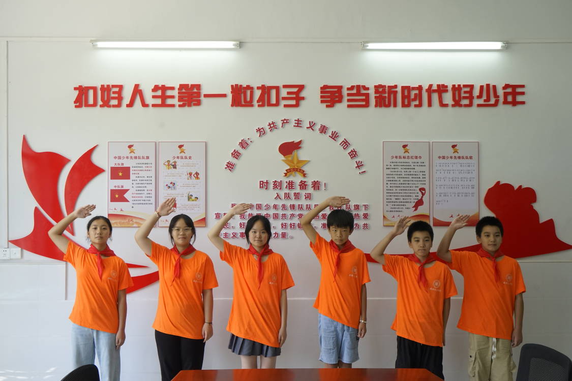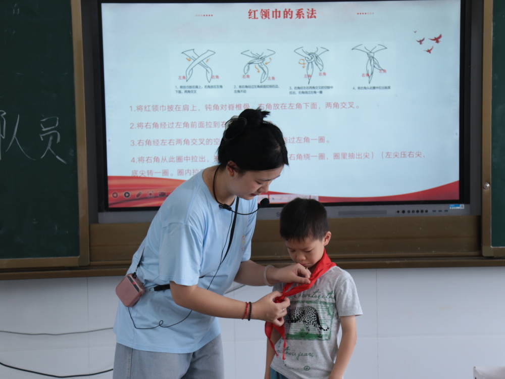 志愿者還組織學(xué)生開(kāi)展了莊嚴(yán)的入隊(duì)儀式。她親自教學(xué)紅領(lǐng)巾的佩戴方法,帶領(lǐng)全體少先隊(duì)員重溫入隊(duì)誓詞。“我是中國(guó)少年先鋒隊(duì)隊(duì)員。我在隊(duì)旗下宣誓:我熱愛(ài)中國(guó)共產(chǎn)黨……”同學(xué)們舉起右拳,高聲宣誓,那一聲聲鏗鏘有力的誓言,回蕩在每一位隊(duì)員的心中,進(jìn)一步激發(fā)了少先隊(duì)員們的榮譽(yù)感和歸屬感。他們鄭重承諾,將時(shí)刻銘記少先隊(duì)的光榮歷史,傳承紅色基因,爭(zhēng)做新時(shí)代的好隊(duì)員。