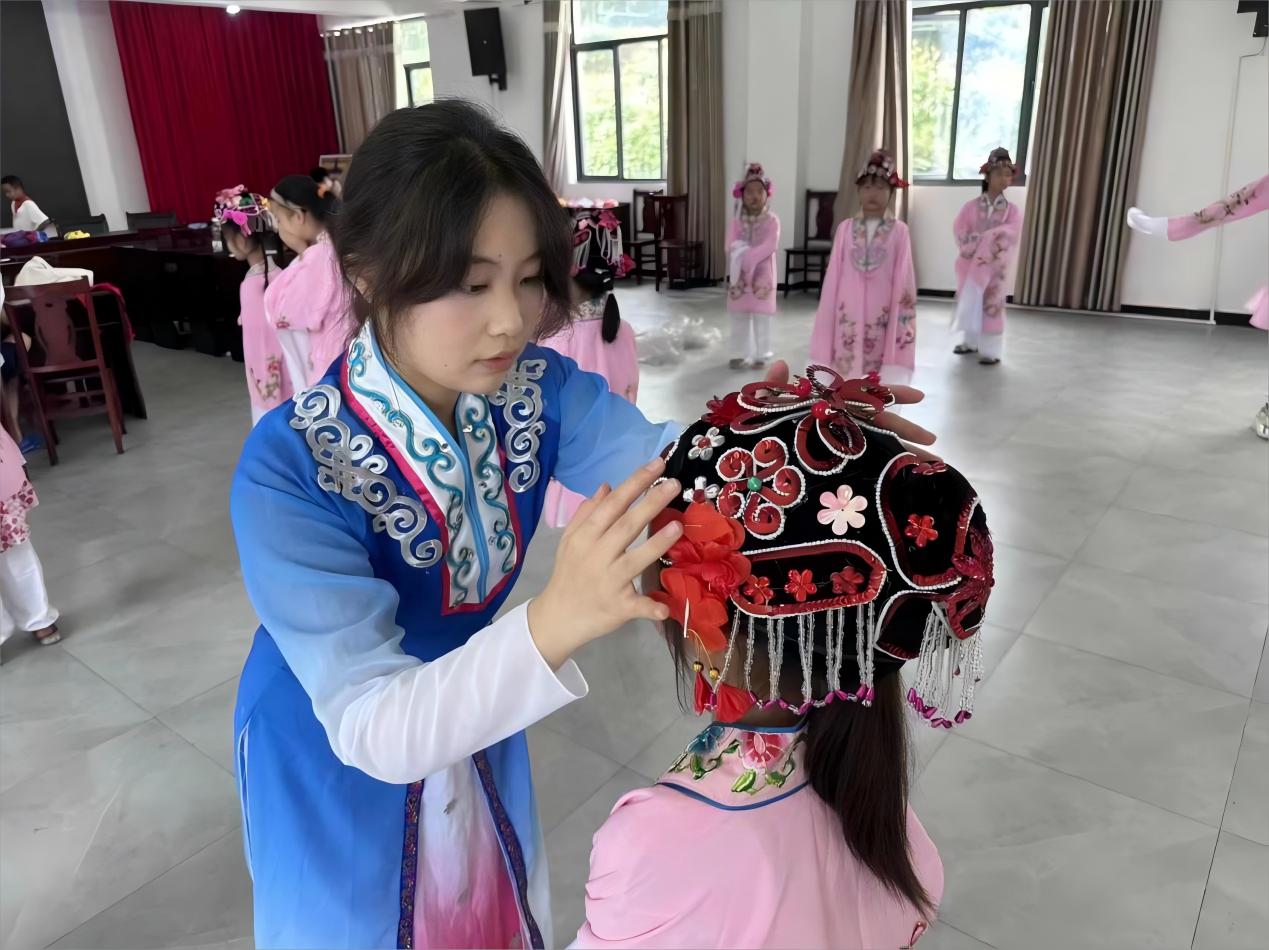 為了讓同學們近距離感受戲曲藝術的獨特韻味,讓傳統(tǒng)戲曲的種子深深根植于孩子們的心中,2024年7月23日,星空夢想志愿服務隊宜昌支隊成員張澤文在三斗坪鎮(zhèn)園藝村黨員群眾服務中心的教室里,開展了傳統(tǒng)戲曲美育活動課程,幫助孩子們更加深刻地體會傳統(tǒng)戲曲文化的精神與內涵。