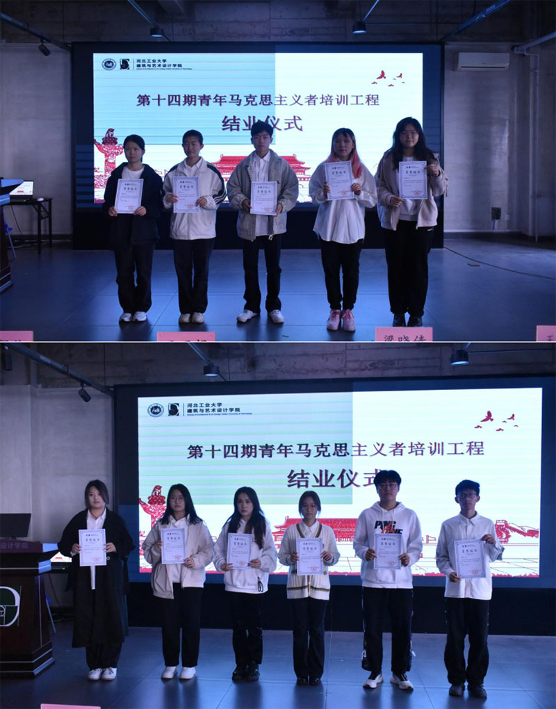 為檢驗(yàn)同學(xué)們的學(xué)習(xí)成果以及“求是”社團(tuán)在思想引領(lǐng)方面取得的成效,10月25日,河北工業(yè)大學(xué)建筑與藝術(shù)設(shè)計(jì)學(xué)院特于九教1207舉辦第十四期青年馬克思主義者培養(yǎng)工程結(jié)業(yè)展示暨優(yōu)勝班級(jí)評(píng)選活動(dòng)。出席活動(dòng)的領(lǐng)導(dǎo)、嘉賓有河北工業(yè)大學(xué)建筑與藝術(shù)設(shè)計(jì)學(xué)院22級(jí)輔導(dǎo)員梁曉倩老師,23級(jí)輔導(dǎo)員王亞妤老師,院團(tuán)委副書記石笠霖,院團(tuán)委委員、科創(chuàng)與實(shí)踐服務(wù)中心主席王思甜,院團(tuán)委委員、科創(chuàng)與實(shí)踐服務(wù)中心主席孫星安,院團(tuán)委委員、社團(tuán)工作中心主席王賀佳。