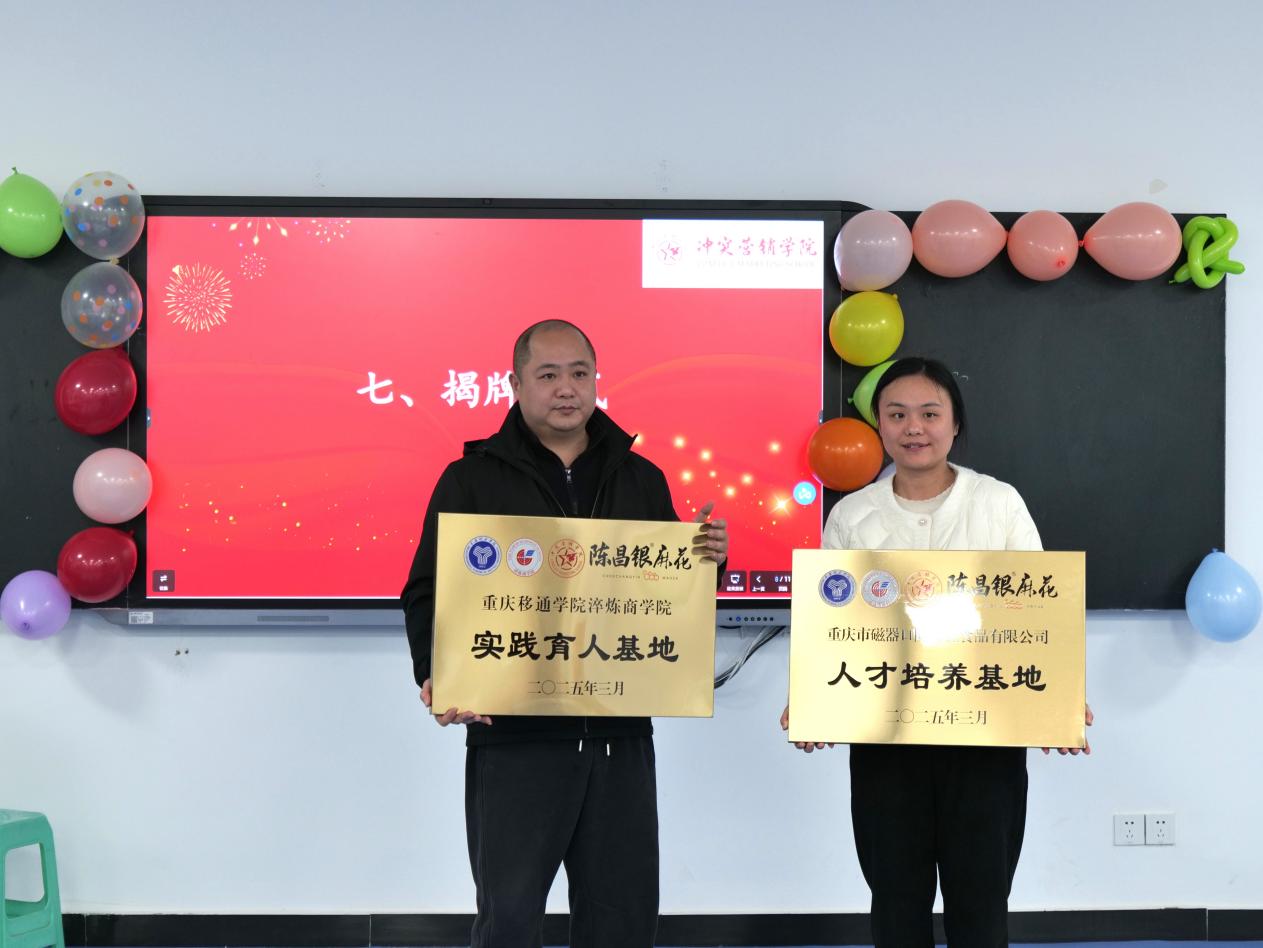 在輕松有趣的互動環(huán)節(jié)后,定制班學(xué)生代表冉楊帆上臺發(fā)言。冉楊帆以“雙向賦能”概括學(xué)習(xí)期待:既要在實(shí)戰(zhàn)中精進(jìn)商業(yè)技能,也要為傳統(tǒng)品牌注入年輕化思維,實(shí)現(xiàn)個(gè)人與企業(yè)的共生共長。陳昌銀店長班的開班不僅能夠?yàn)閷W(xué)生提供實(shí)踐學(xué)習(xí)的平臺,更能夠激發(fā)他們的創(chuàng)新思維,共同推動老字號品牌的年輕化、現(xiàn)代化發(fā)展。緊接著的授牌儀式,由重慶市磁器口陳麻花食品有限公司門店經(jīng)理王懿和淬煉商學(xué)院學(xué)工副院長劉薇唯進(jìn)行校企雙方授牌,標(biāo)志著陳昌銀店長班定制班正式成立。該班將定向培養(yǎng)兼具實(shí)戰(zhàn)能力與創(chuàng)新思維的專業(yè)人才,精準(zhǔn)匹配陳昌銀麻花的戰(zhàn)略發(fā)展需求,為校企協(xié)同創(chuàng)新注入可持續(xù)動力。