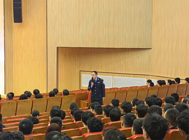 3月22日下午,太原市公安局直屬分局任思宇警官走進中北大學(xué)開展反詐宣講進校園活動,在學(xué)??扑囋废蜍浖W(xué)院2023-2024級66個班級學(xué)生進行全覆蓋式的宣講活動。讓學(xué)生進一步了解網(wǎng)上刷單、網(wǎng)上貸款等行為的危害性,提高防范電信詐騙犯罪的意識和能力,從而減少電信詐騙案件的發(fā)生。