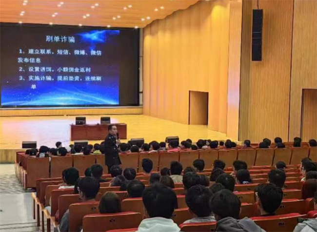 此次宣傳通過現(xiàn)場講解的方式進行?;顒蝇F(xiàn)場,任警官從什么是網(wǎng)絡(luò)電信詐騙、網(wǎng)絡(luò)電信詐騙的現(xiàn)狀和特點以及網(wǎng)絡(luò)電信詐騙的常見類型三個方面,全方位教育學(xué)生如何避免被詐騙。任警官結(jié)合實際案例,系統(tǒng)歸納犯罪分子常用的詐騙方式和手段,細致分析受害者上當(dāng)受騙的原因,并仔細講解各種防范對策及被騙后的補救措施,教育同學(xué)們在生活中做到不輕信、不轉(zhuǎn)賬、不上當(dāng),遇到類似詐騙要及時報警,更好地保護自己的財產(chǎn)安全。任警官還向同學(xué)們介紹了國家反詐中心APP和反詐微信小程序,并說明其防詐騙功能的原理和實現(xiàn)方式,幫助大家進一步"擦亮雙眼",切實提升防詐騙能力。深刻揭露了詐騙組織侵害大學(xué)生身心健康、破壞家庭穩(wěn)定、擾亂社會秩序的危害。