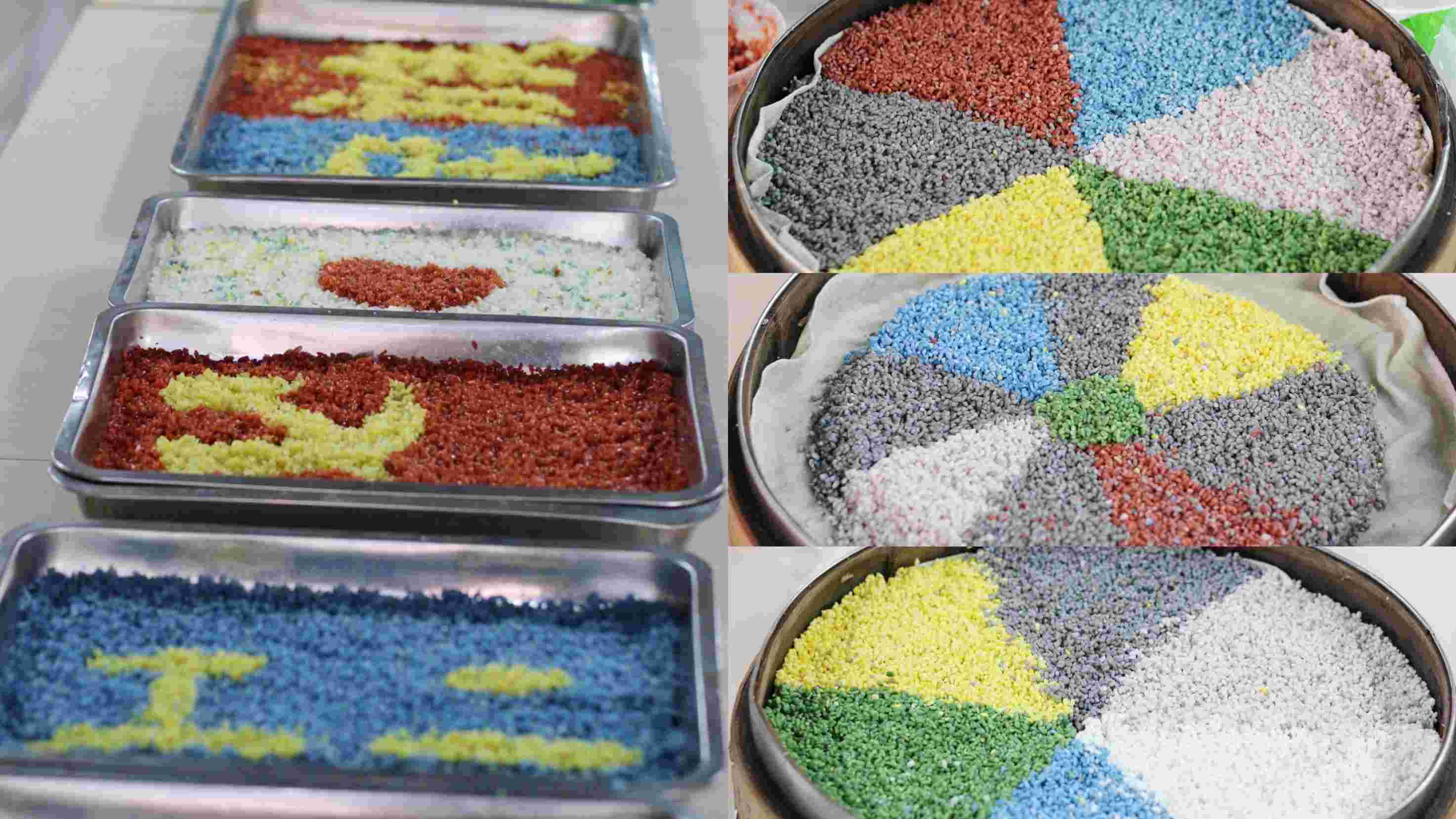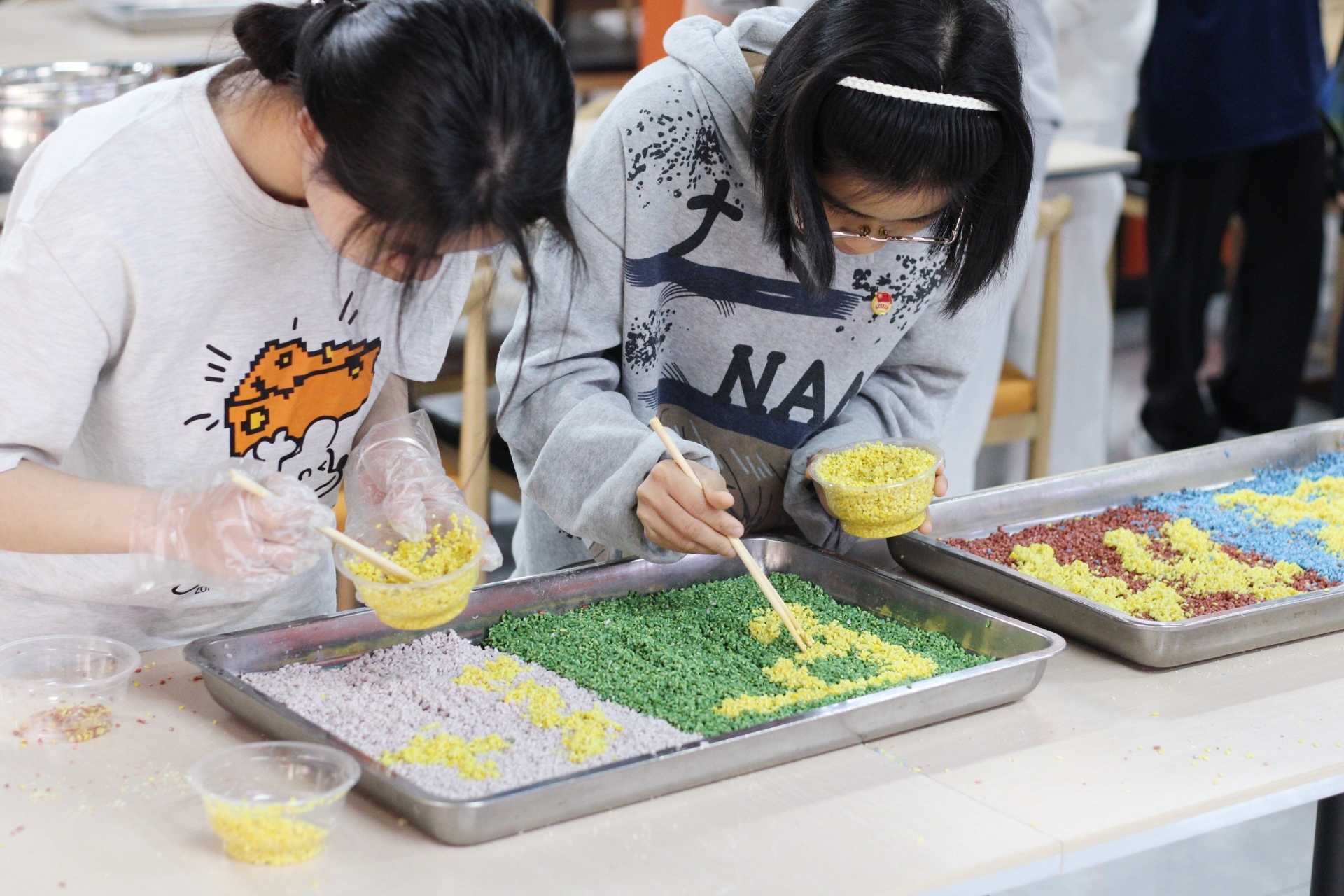 3月22日上午,經(jīng)過十余小時浸泡的五色糯米色澤鮮亮。支部成員以黨小組為單位開展“匠心傳承·共繪五色同心圓”擺盤創(chuàng)意比賽。比賽過程中,各黨小組以“民族復興”為主題,將愛國主義、民族團結(jié)等時代主題融入作品創(chuàng)作中,他們將泡好的糯米瀝出水分,在餐盤中進行五色糯米擺盤創(chuàng)意設計。各黨小組充分發(fā)揮創(chuàng)意,設計出了造型各異、寓意深刻的作品,有的以民族圖案為靈感,展現(xiàn)了獨特的民族風情;有的融入了現(xiàn)代元素,體現(xiàn)了傳統(tǒng)文化與時代精神的結(jié)合。