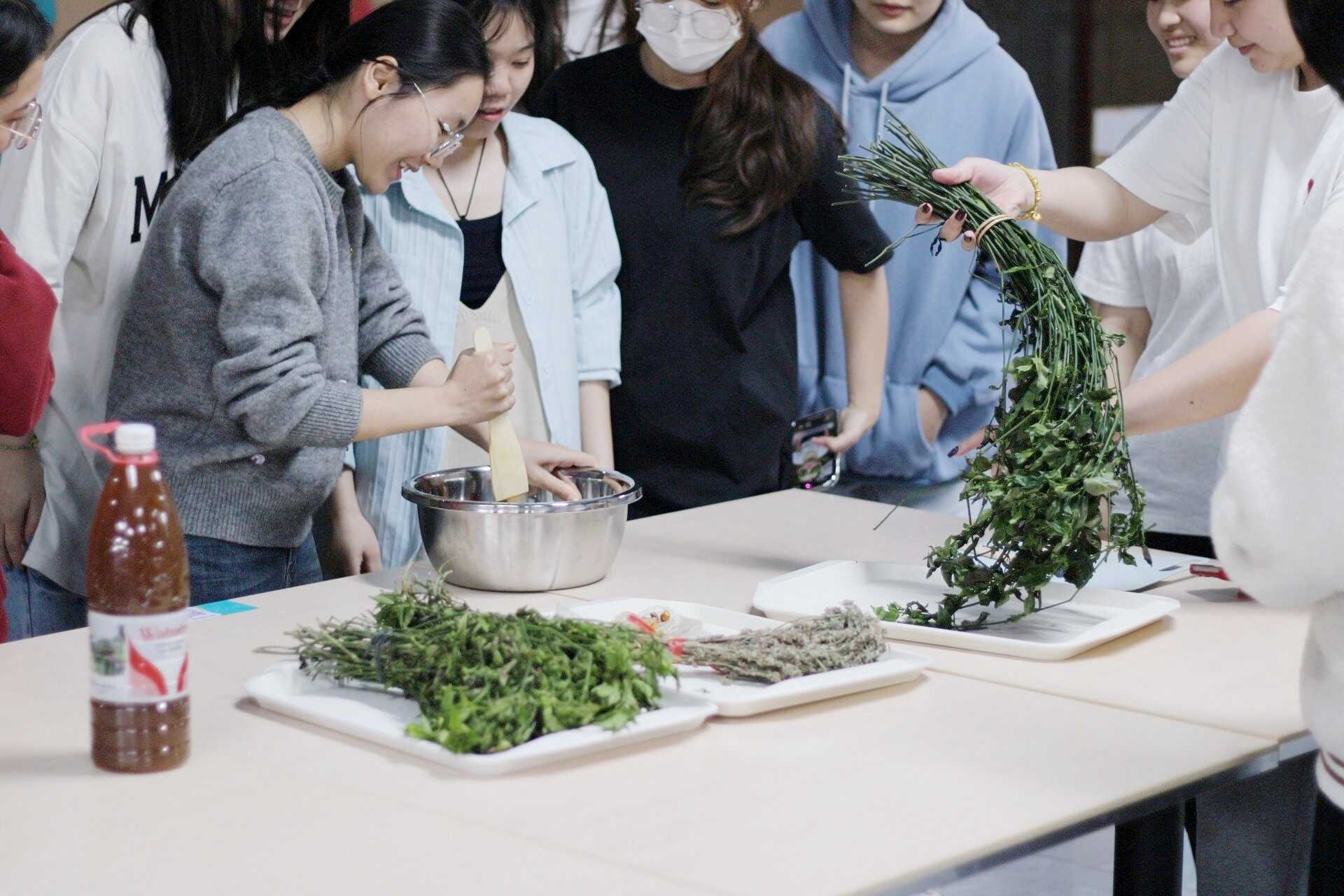 3月21日晚,活動以“凝心聚力·巧制五彩民族韻”環(huán)節(jié)拉開序幕。在韋妹騰同志的帶領下,支部成員化身“非遺傳承人”,參與五色糯米天然植物染料制備、糯米染色等工序,親身體驗民族文化的獨特魅力。活動現(xiàn)場,支部成員分組清洗楓葉、密蒙花、紅藍草等天然植物,并用熱水對植物的色素進行萃取。隨后,把糯米分別浸泡在不同顏色的汁液中,為次日的五色糯米制作奠定基礎。