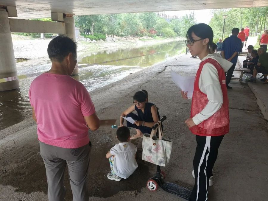 正午,隊(duì)員們跟隨丁家社區(qū)疏主任趕往虞河邊,勸阻想要下水的孩子們遠(yuǎn)離水域。同孩子們交流的過程中,隊(duì)員們深刻體會到“責(zé)任”二字的分量——它并非抽象概念,而是危險(xiǎn)面前的多問一句、多走一步,是每一次彎腰勸誡、耐心引導(dǎo)的實(shí)在行動(dòng)。