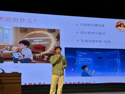 活動的高潮出現(xiàn)在互動環(huán)節(jié)。“大家知道這些文創(chuàng)產(chǎn)品上的動漫形象是怎么來的嗎?”隨著提問,團(tuán)隊展示了運用前沿AI技術(shù)生成的老兵動漫形象,并帶來了自主設(shè)計開發(fā)的系列主題文創(chuàng)產(chǎn)品,包括帆布包、書簽、活頁本、明信片等。這些融合了時代創(chuàng)意與紅色基因的精致禮物,瞬間激發(fā)了學(xué)生們的濃厚興趣,讓抽象的老兵精神變得可感、可觸、可親近。同學(xué)們踴躍參與,爭相舉手提問,從對軍旅生活的好奇,到對歷史細(xì)節(jié)的探尋,再到對愛國主義內(nèi)涵的思考,現(xiàn)場氣氛熱烈,思想的火花不斷碰撞。